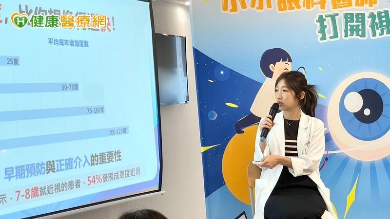 謝昀臻醫師提醒,近視預防應從小開始,日常可遵守「20-20-20原則」:每用眼20分鐘,休息20秒,將視線轉向6公尺以外,舒緩眼睛疲勞。若能長期落實,將有助於減少視力惡化。